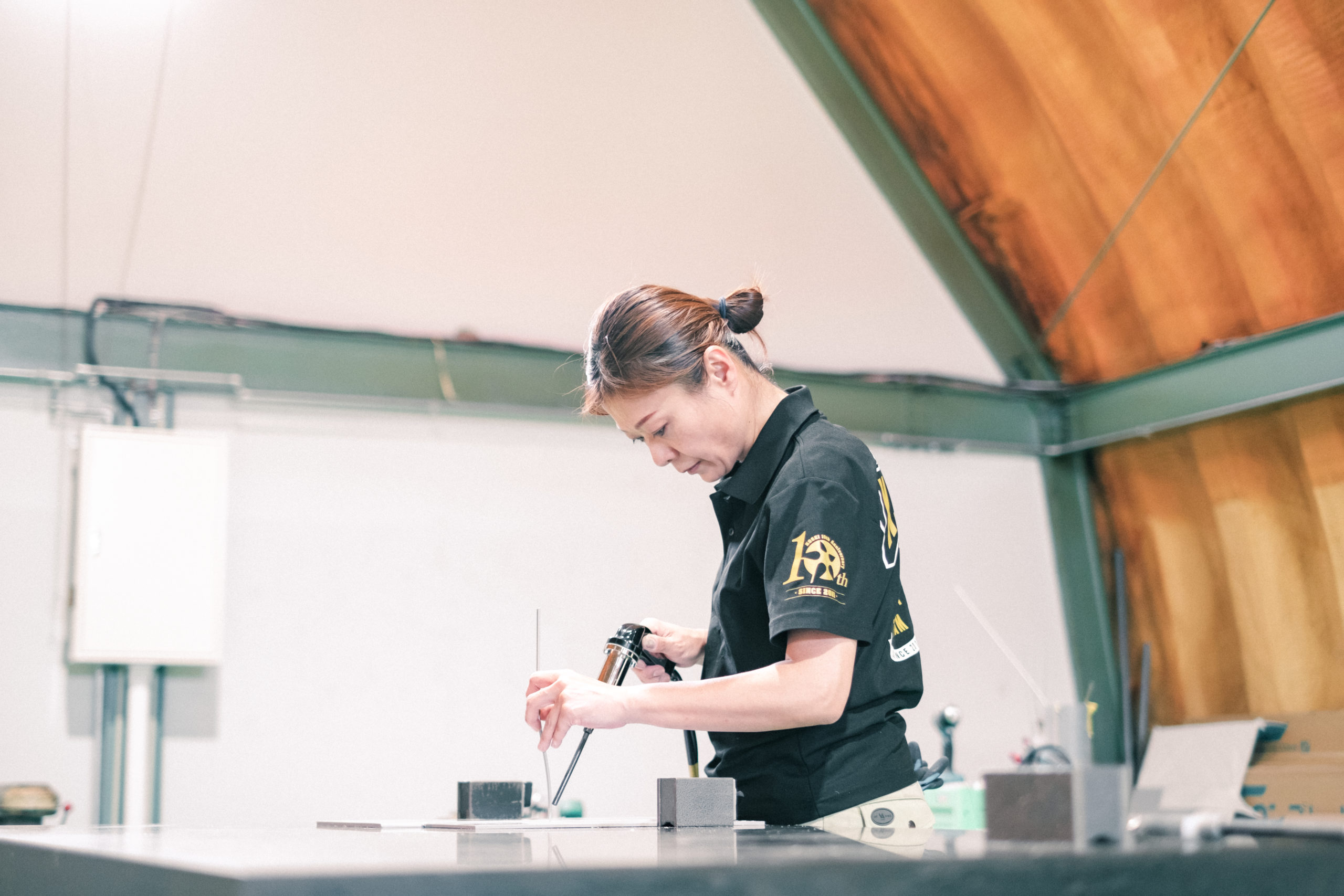 あと、気をつけている事としてもう一つ。写真全般に言えることですが、撮影において大切なのはやはり「光」ですね。工場など蛍光灯が多い場所で単にストロボを焚いて撮影しても、のっぺりとした仕上がりになってしまいます。現場に入ったらまずは自然光の入り方を観察し、それを活かす方法を考える。必要に応じてストロボも使いますが、今回の場合、ガツンと当てるのではなく、光と影のバランスを考えながら柔らかい表現を心がけました。